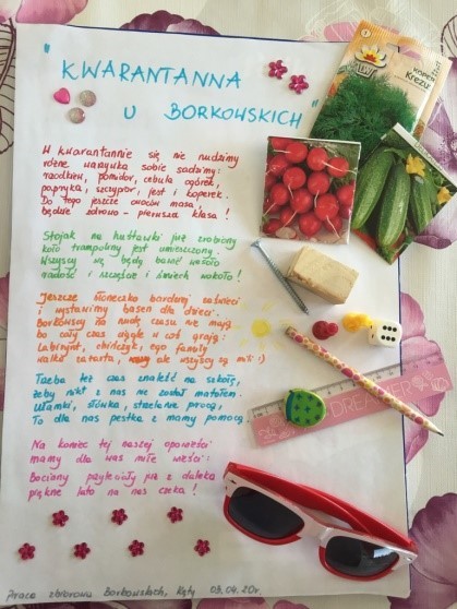 Wychowankowie Świetlicy nie po raz pierwszy okazali się mistrzami kreatywności i różnorodności. Wielokrotnie zaskoczyli komisję konkursową formami prac. Były wśród nich: filmiki, wiersze, twórczość kulinarna, fotograficzna, plastyczna, fryzjerska, florystyczna, a nawet konstrukcyjna. Młodzi ludzie, mimo wszechobecnej pandemii i wielu szkolnych obowiązków, pokazali, że czas spędzony w domu można wykorzystać w sposób twórczy, pożyteczny i pasjonujący.