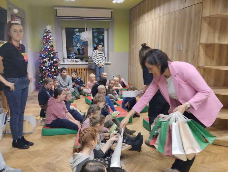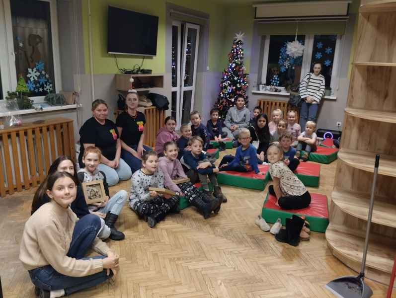 Na zakończenie warsztatów uczestnikom projektu „Rodzinne Piernikowanie – edycja 2.0” wykonano pamiątkowe, grupowe zdjęcie oraz rozdano dzieciom świąteczne upominki, w tym pięknie dekorowane bezowe lizaki. Składamy serdeczne podziękowania wszystkim rodzinom uczestniczącym w projekcie za liczne przybycie na spotkanie, za stworzenie miłej atmosfery oraz wspólnie spędzony czas. Dziękujemy również animatorkom z firmy „Czary mary” za włożoną pracę w przygotowanie warsztatów.Życzymy wszystkim Wesołych Świąt i pomyślności w nadchodzącym Nowym Roku!